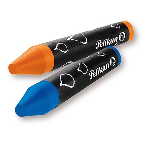 Kunststof verpakking met 8 ronde pennen en schraper. Met bijenwas. Om te schilderen en te schrijven. Breukvast. Heldere kleuren. Eenvoudig aan te brengen. Ideaal voor de kinderhand.